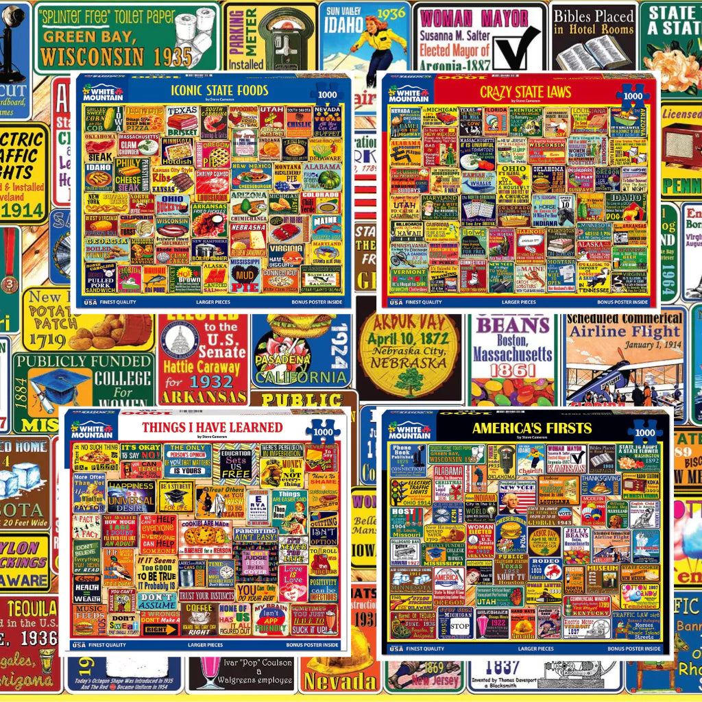 Celebrate life's favorite moments and themes with our vibrant collage jigsaw puzzles, featuring nostalgic montages of everything from classic candies and vintage advertisements to beloved hobbies and Americana that transform into delightful challenges for puzzlers of all ages.
