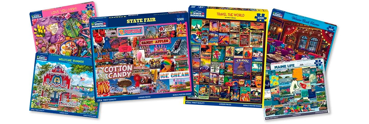 For over 30 years, White Mountain Puzzles has crafted the highest quality puzzles for the entire family to enjoy. We offer colorful jigsaw puzzles from recognized artists, available for all ages and all levels of difficulty.