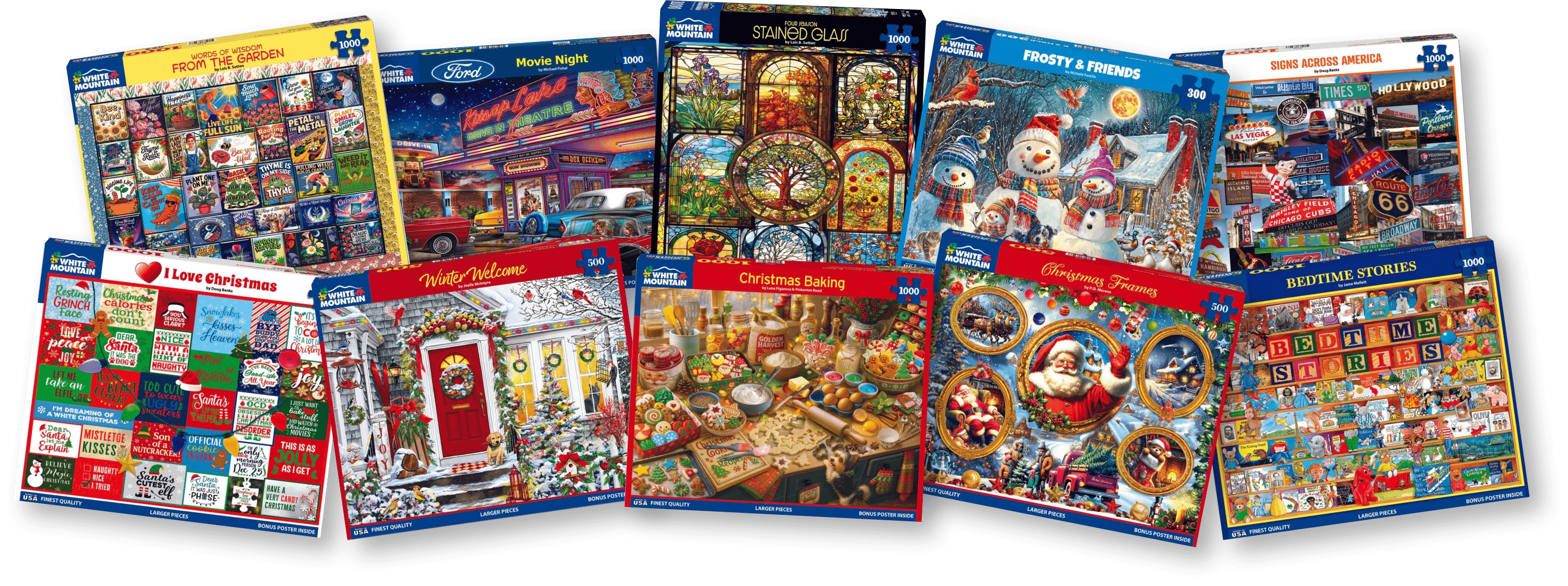 For over 30 years, White Mountain Puzzles has crafted the highest quality puzzles for the entire family to enjoy.  We offer colorful jigsaw puzzles from recognized artists, available for all ages and all levels of difficulty.
