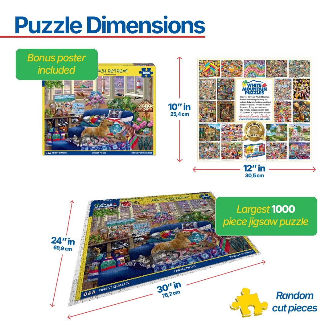 Every White Mountain Puzzle includes our HAPPINESS GUARANTEE. If you are not completely delighted with your puzzle experience, we will replace your puzzle with a new one for free within a year of your purchase. Simply contact us at