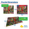 2158 Porch Puppies. Step into a heart melting slice of paradise where flowers bloom in full color and playful puppies turn the front yard into their own joyful playground. From wagging tails and chewing slippers to a sleepy pup napping in a little red wagon. Artist P.D. Moreno created a charming lakeside retreat that overflows with warmth, laughter, and pure happiness in this 1000 piece jigsaw puzzle. Finished size 24" x 30".