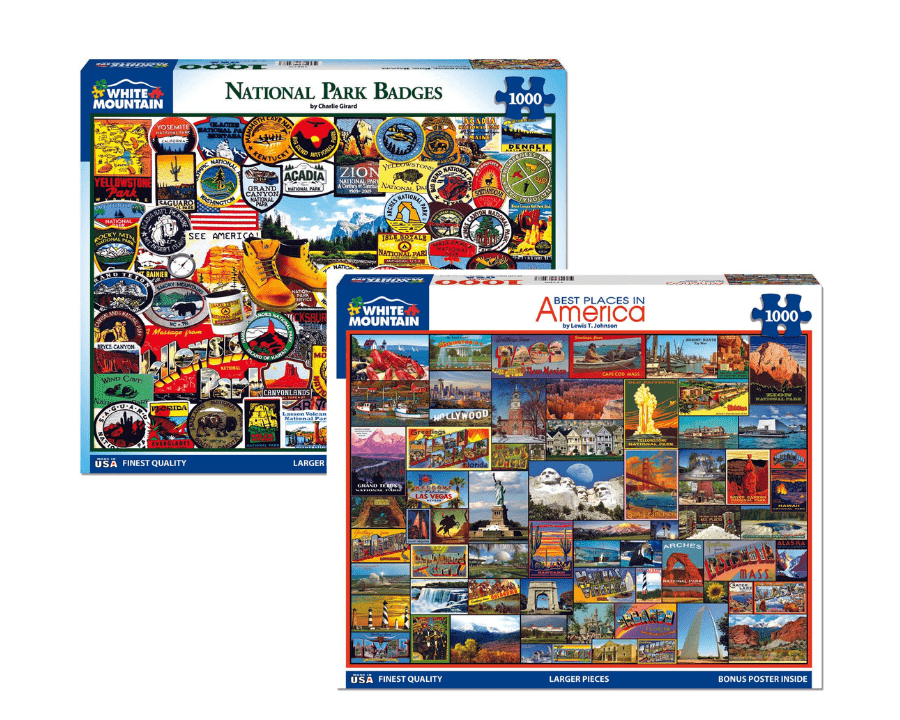 Explore the United States with this 1000 piece puzzle, National Park Badges by artist Charlie Girard. Featuring a colorful combination of badges from national parks across the country, this 1000 piece puzzle is perfect for those who love travel or the outdoors. See what each national park has to offer as you piece together this puzzle and dream of your next adventure. From the rich fossil beds of The Badlands in South Dakota, to the highest point along the North Atlantic seaboard in Acadia National Park, this 1000 piece jigsaw features all of the highlights.