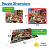 1797pz Cozy Bookshop. As you walk in the door of Bound to Please Bookstore you’re immediately greeted by the resident families. Momma dog is teaching her puppy to wait patiently at the door for new guests while momma cat and kitten are on the desk doing what cats do best - napping. Make sure to pet the orange cat as you stroll the biography section and scratch the dogs head while you peruse the new arrivals table. Artist Steve Read creates the perfect reading environment in this 500 piece jigsaw puzzle. Finished size of 18” x 24”.