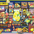 1921 Citrus. Both sweet and sour, citrus fruits are instantly recognizable by their scent. Oranges, lemons, grapefruits, pomelos, and limes are all versatile and can be used to create all the best desserts. Synonymous with summer, citrus is a signal warm weather has arrived. Artist Lois B Sutton has gathered vintage signage to create a refreshing treat for you in this 1000 piece jigsaw puzzle. Don’t forget the lemonade. Finished size 24" x 30".