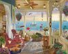 1596 Summer Breeze. The tabby cat watches the seagull perched on the railing watching the birds at the feeder, and the family pooch just sleeps through it all in his cozy bed. Wouldn't you just love to be sitting in one of the wicker chairs on this porch with them, enjoying the ocean breeze and watching the rest of the world sail by. Artist David Maclean has brought this dream to life on a 1,000 piece puzzle with a finished size of 24" x 30".