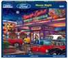 2101 Movie Night. Friday nights were made for the Drive-In. Both unique and nostalgic, the atmosphere is relaxing yet memorable. Like the movie showing is just for you. Bright lights call to you like a beacon in the darkness promising a night of movies, snacks, and fun all from the comfort of your car. Artist Michael Fishel invites you to the movies in this 1000 piece jigsaw puzzle. Can you stay awake for the closing credits? Finished size 24" x 30".