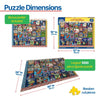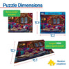 2128 Cafe Bookstore. Cozy bean bags, curious minds, and colorful shelves stretch as far as the eye can see. Whether you’re hunting for mysteries, diving into fantasy, or flipping through comics and puzzles, this café bookstore has something for everyone. Artist Joelle McIntyre created this 1000 piece jigsaw puzzle to remind you where stories begin the real-world melts away. Finished size 24" x 30".