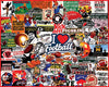 1771pz I Love Football. Calling all football fans. Artist Charlie Girard has gathered slogans, stadium names, famous players, and more in this 1000 piece collage style jigsaw puzzle. Finished size 24" x 30".